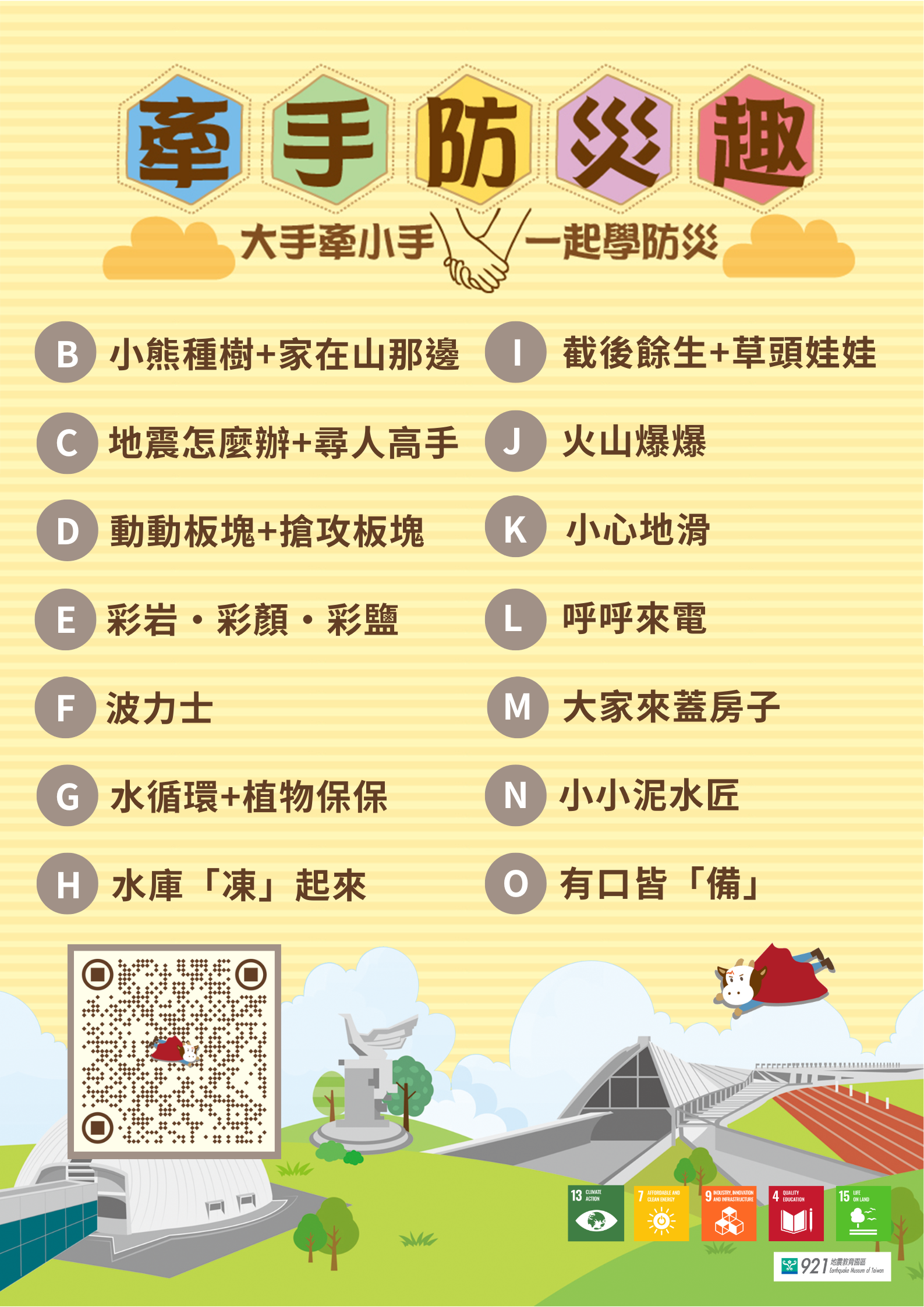 轉知國立自然科學博物館舉辦921地震教育園區 115年到校服務「牽手防災趣-大手牽小手、一起學防災」專案活動,歡迎各班踴躍申請。