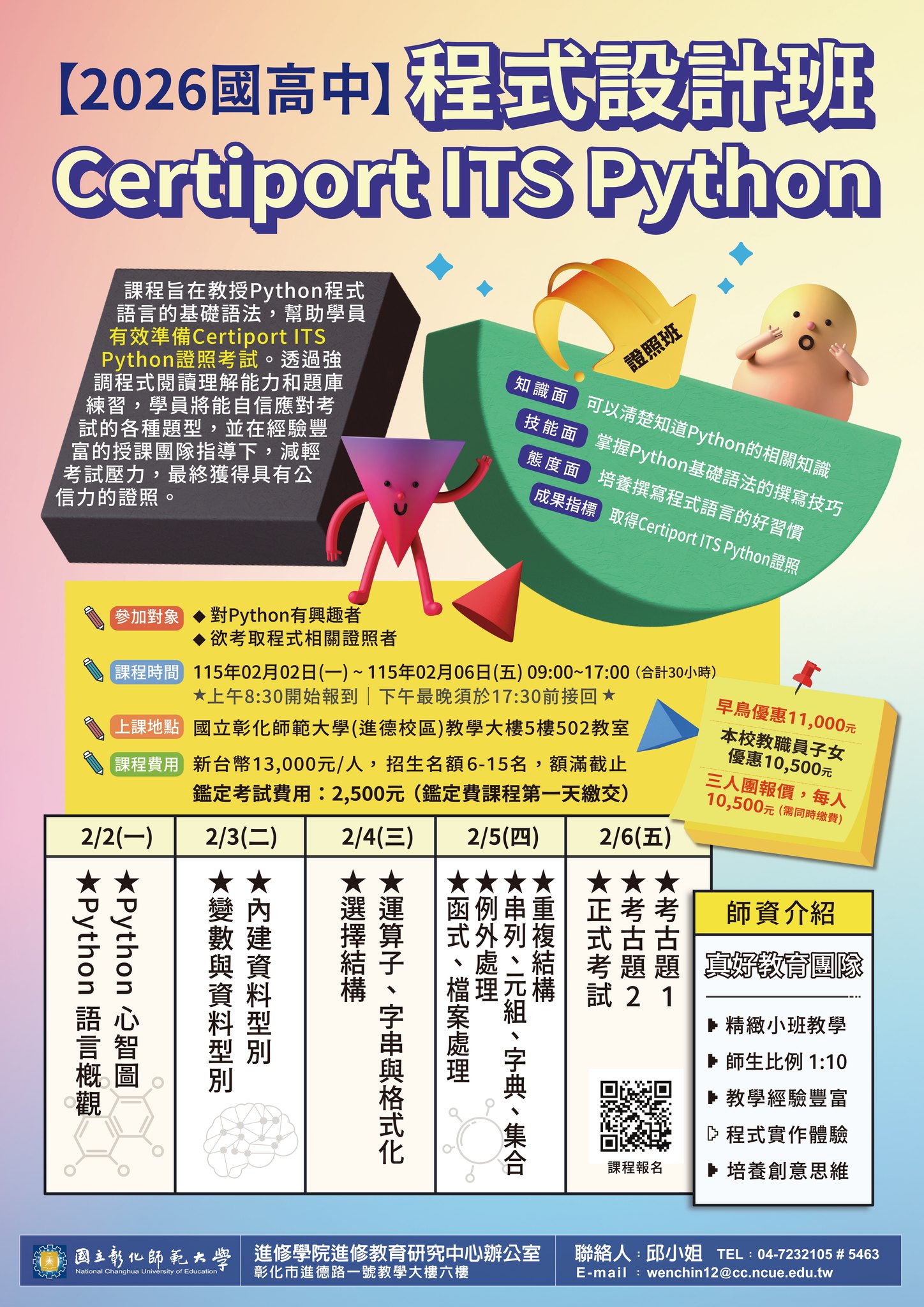 進修學院推廣教育「【2026國高中程式語言】 Certiport ITS Python程式設計班」、「日語會話五十音 基礎班」、「日語N3中級Ⅱ班」招生簡章